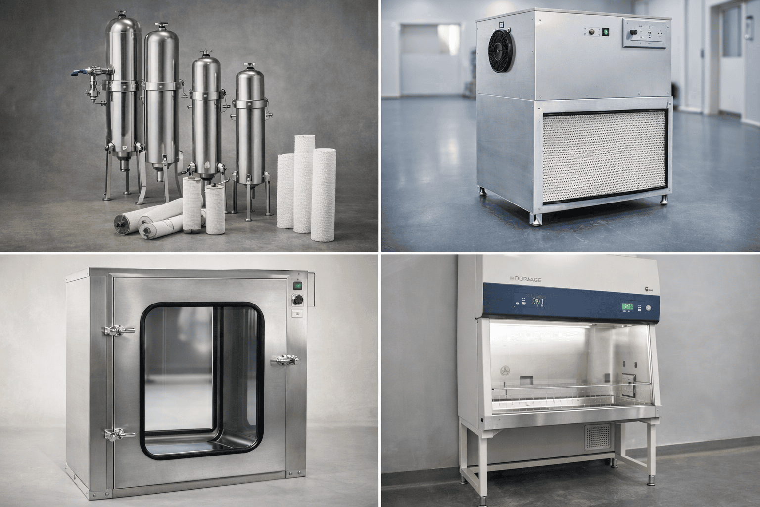 Filter housings, Fan Filter Units (FFU), Pass Boxes, Biosafety Cabinets, and associated cleanroom components with installation support.